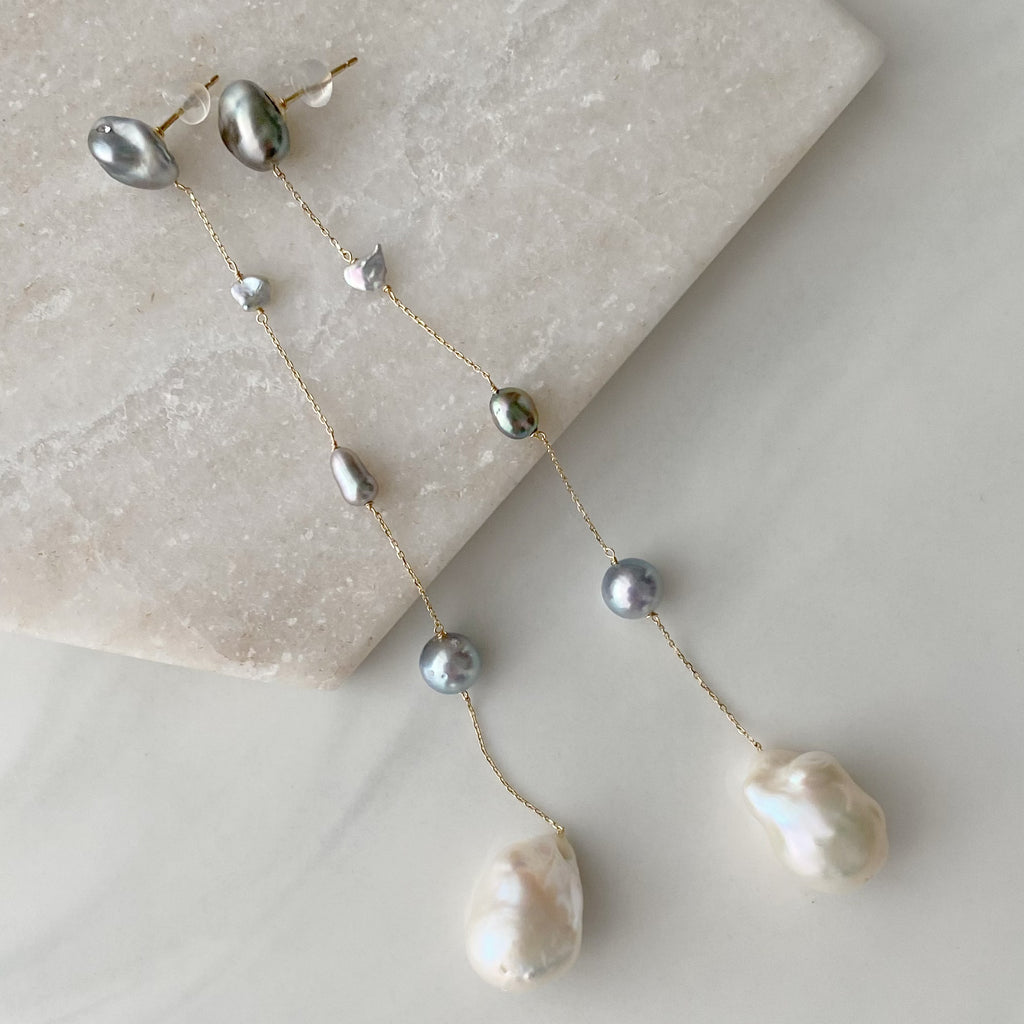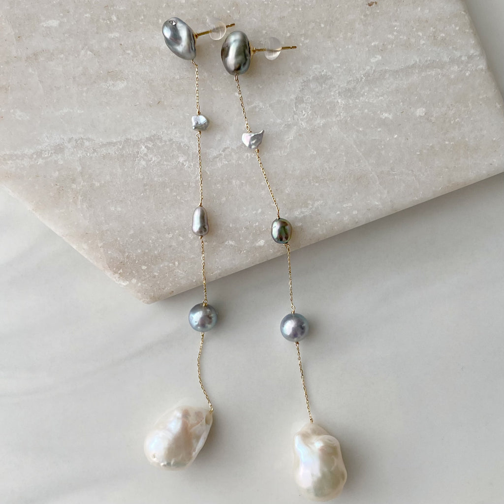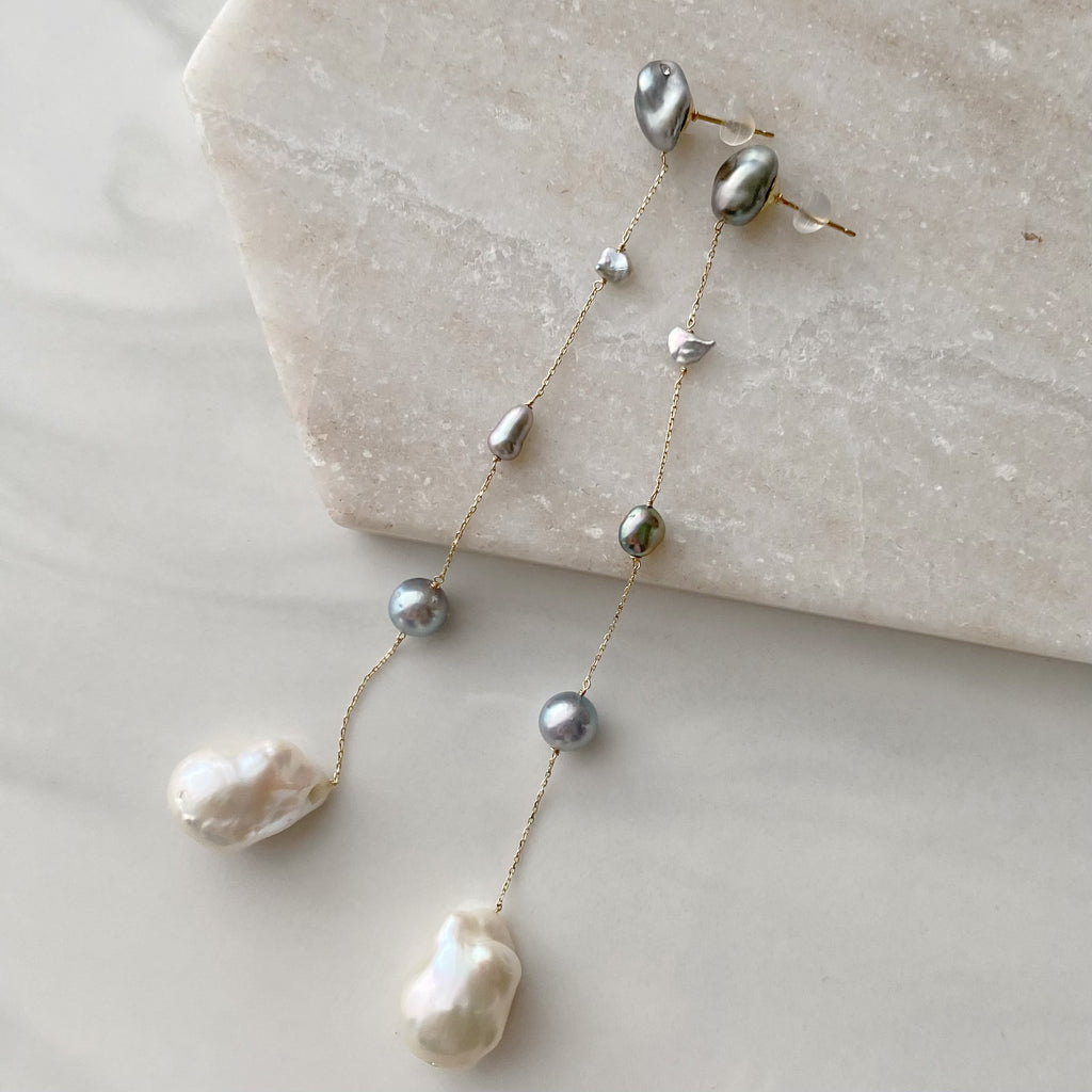 一点もの akoya×tahiti×oyster baroque pearl long ピアス イヤリング