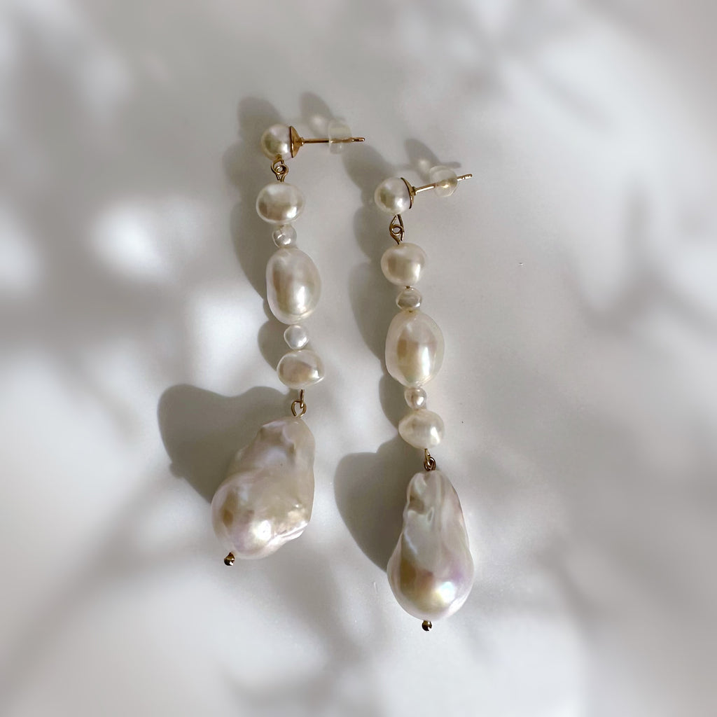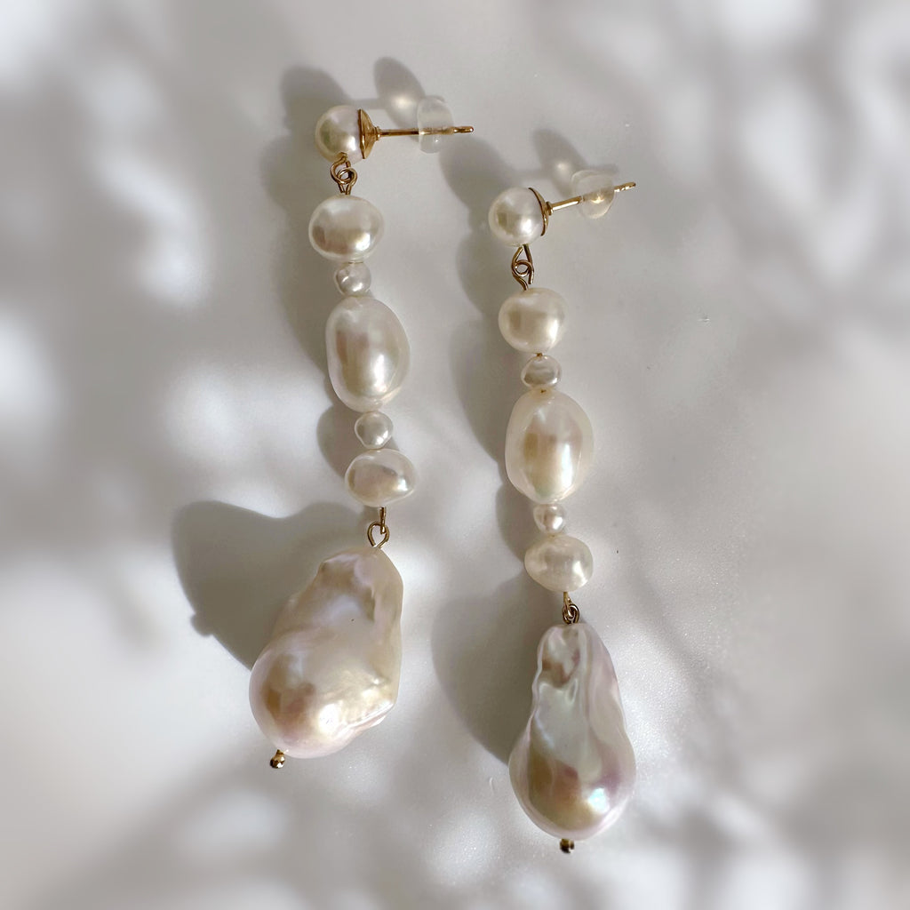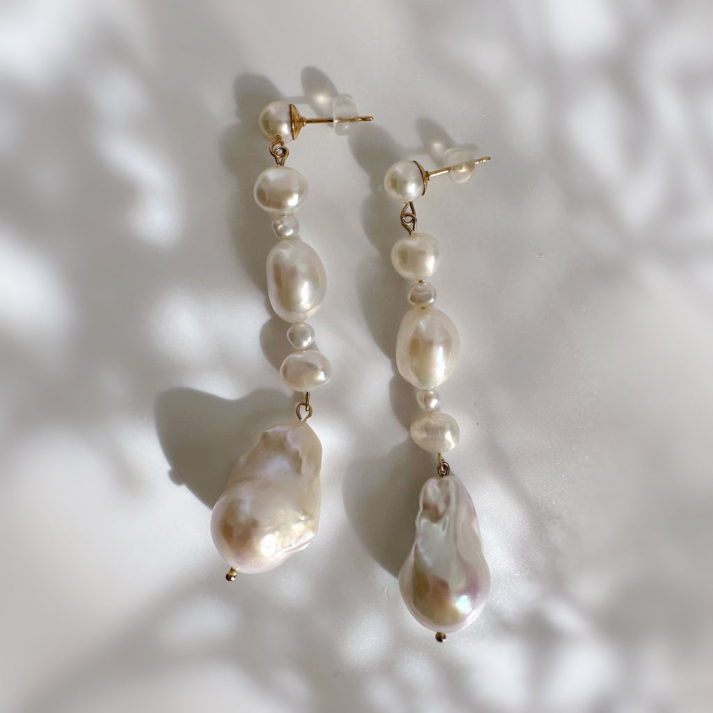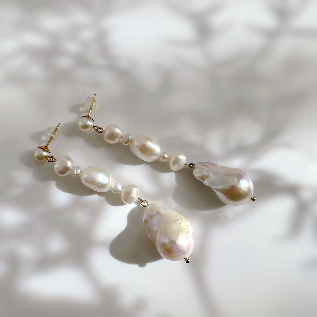 かたちや大きさが違うバロックパールを並べたリズミカルなデザイン。