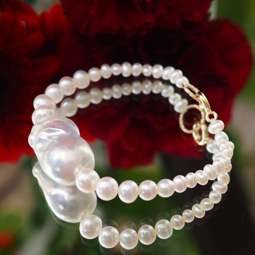 美しいグラデーションパールに大粒バロックパールを飾ったブレスレット。