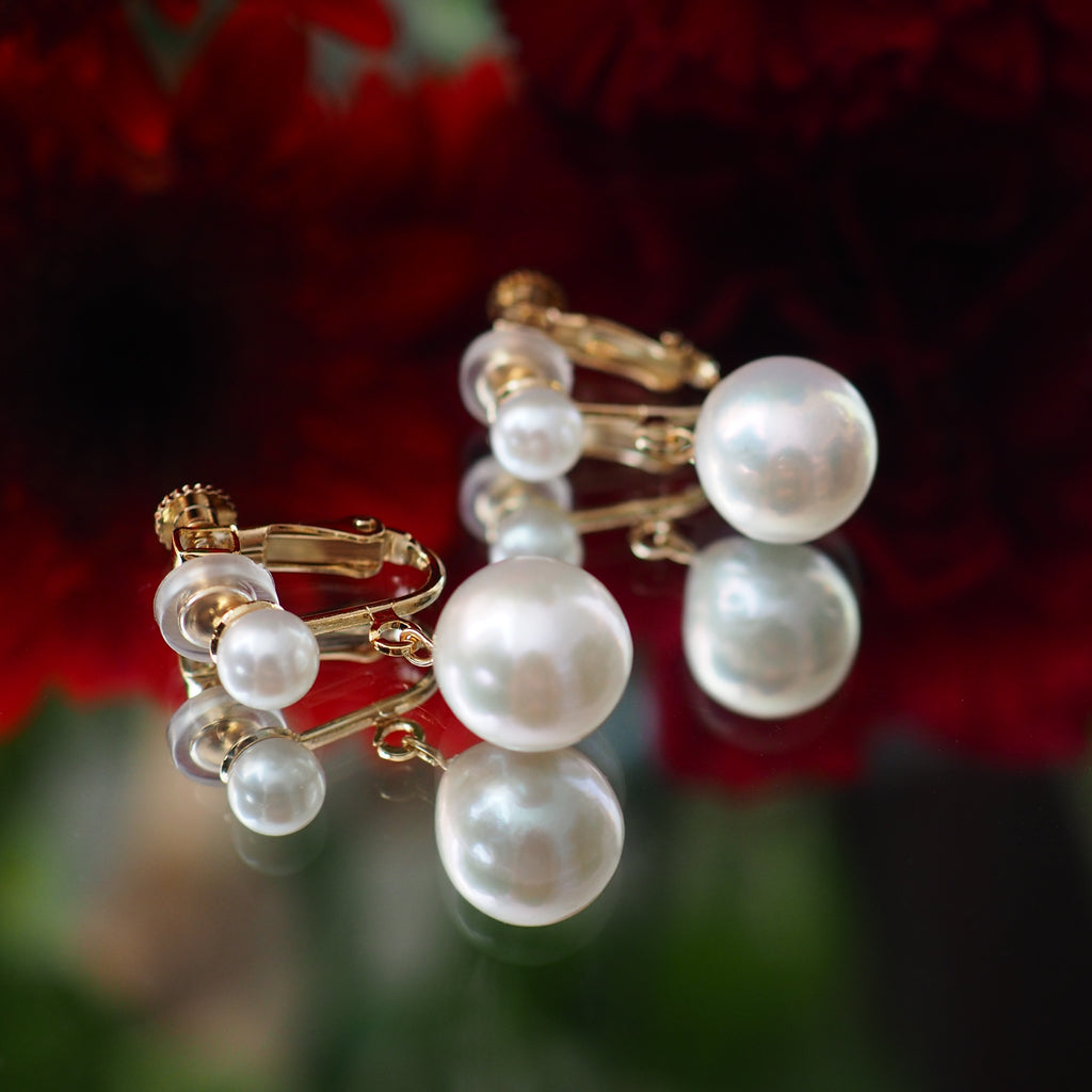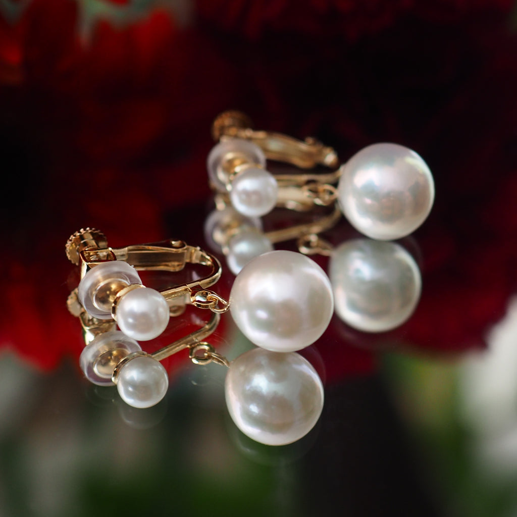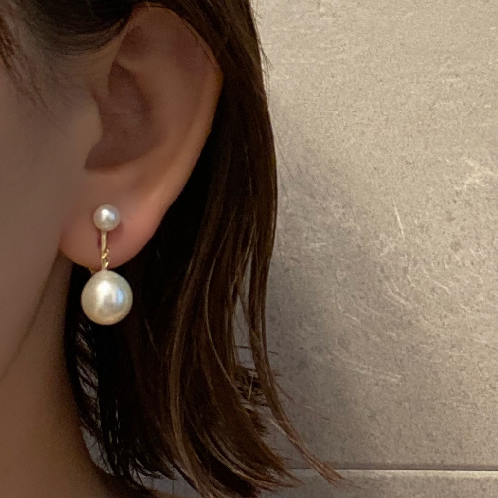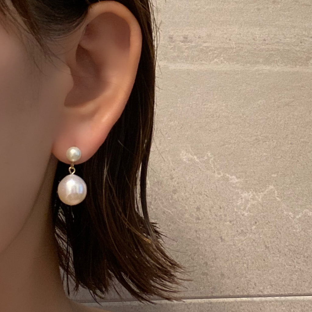 ベビーパールとティアドロップパールを組み合わせたピアス、イヤリング。