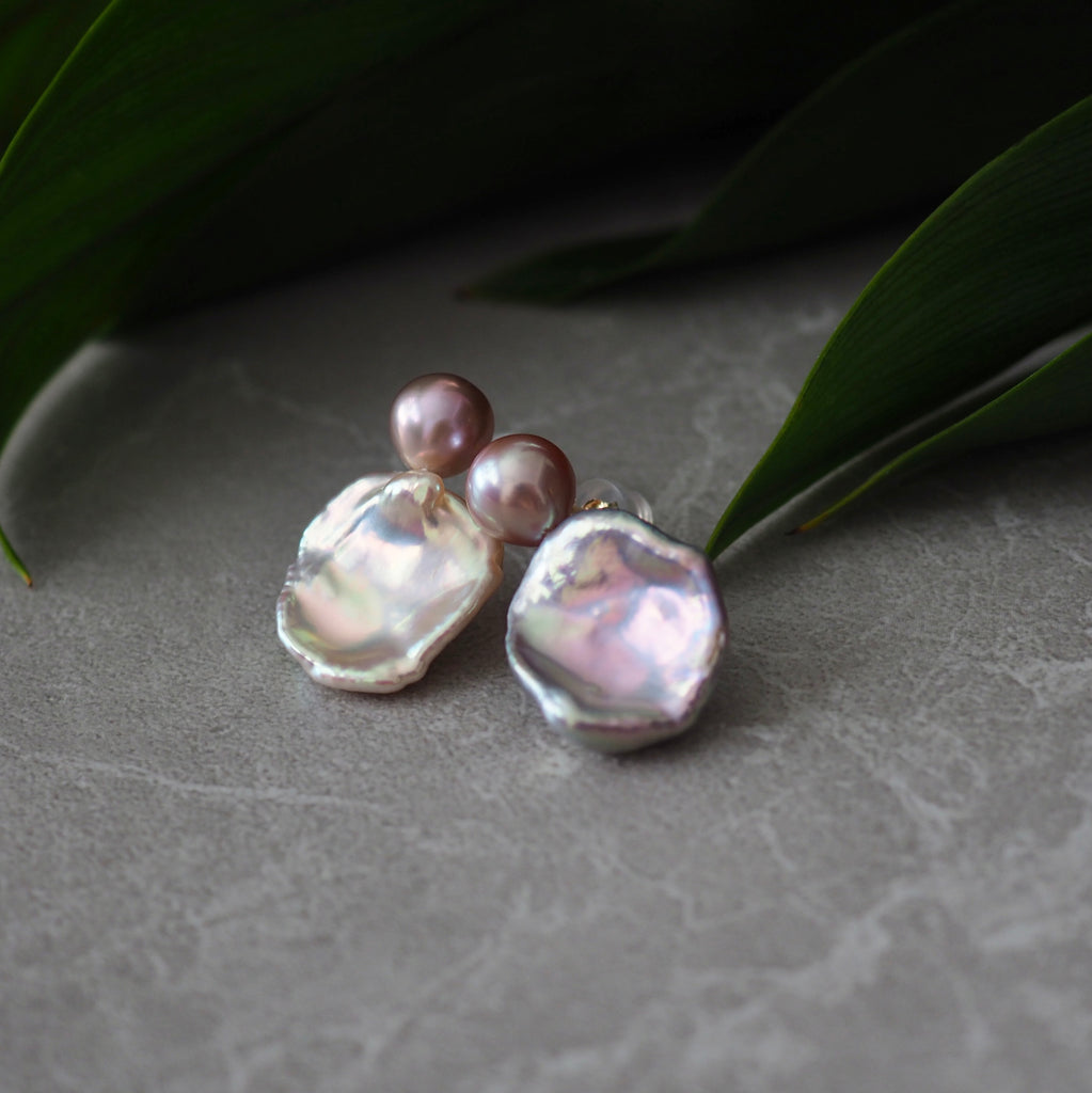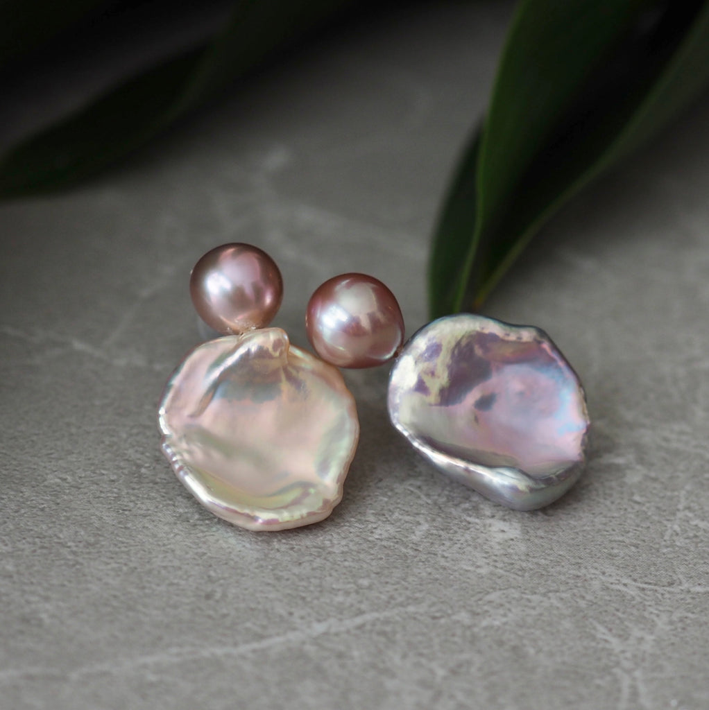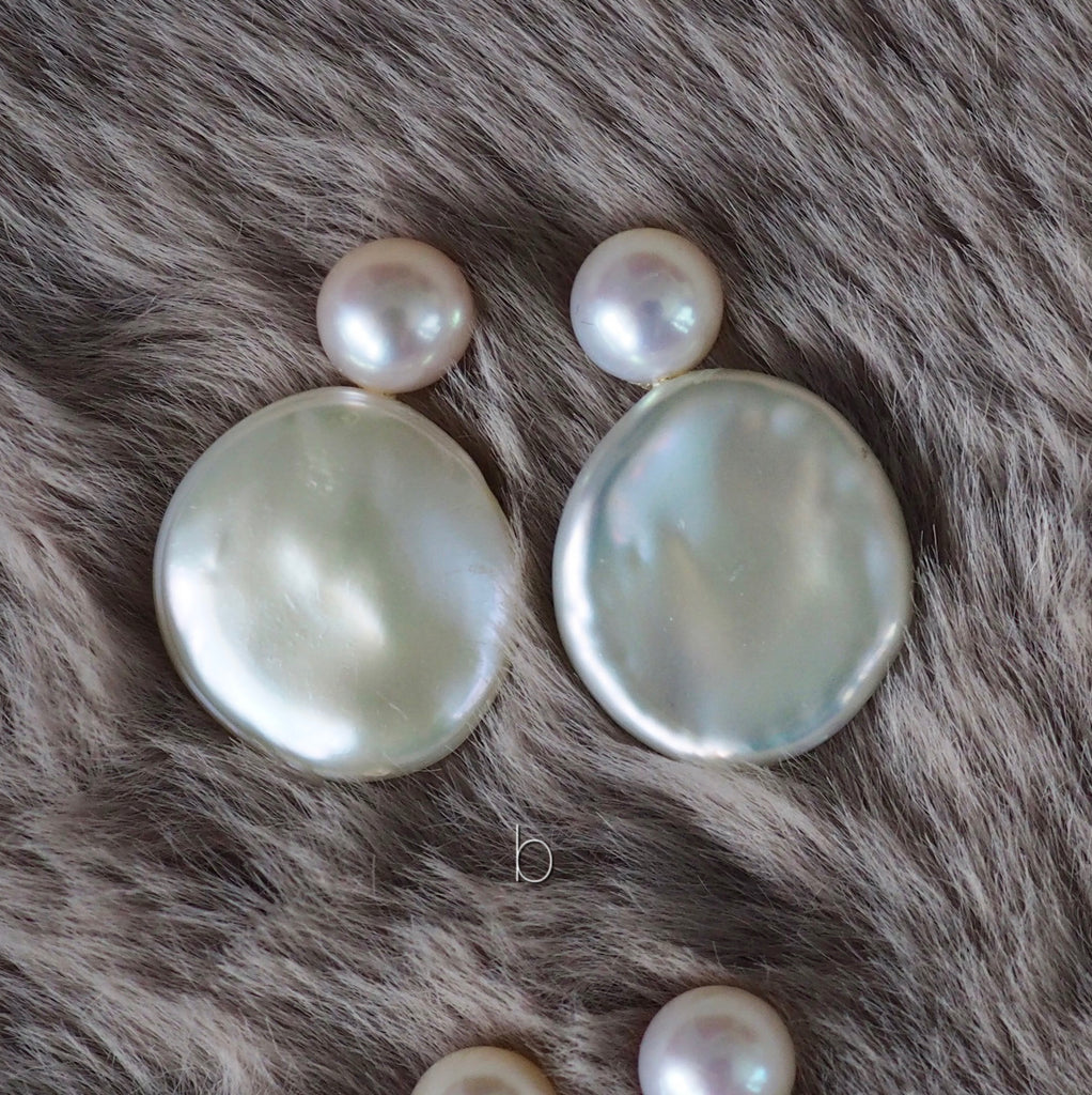 k18 natural  white pearl twin ピアス - hikari pearl.