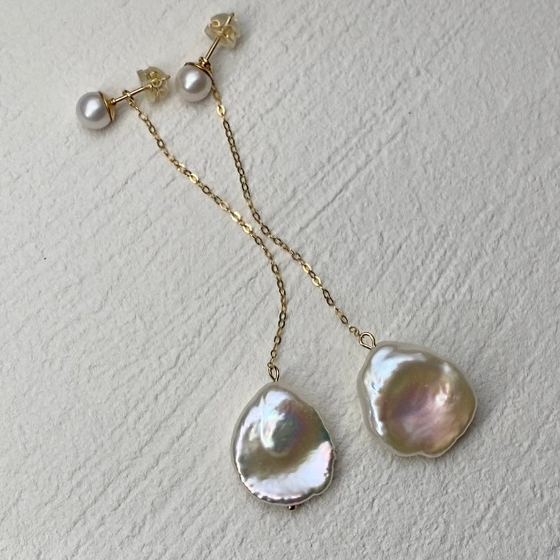 花びらのかたちが上品なペタルパールロングピアス/イヤリングです。