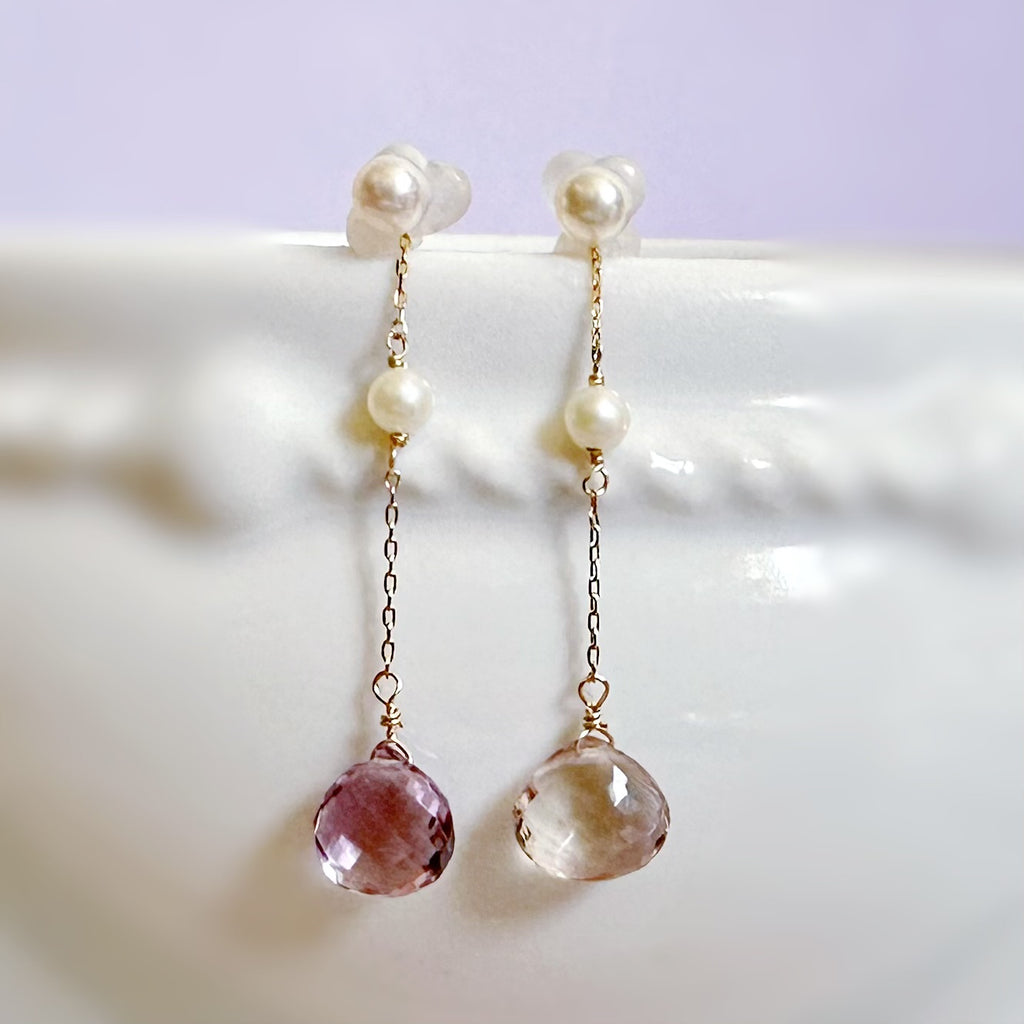 一点もの k10/k18 ametrine pearl station ピアス イヤリング