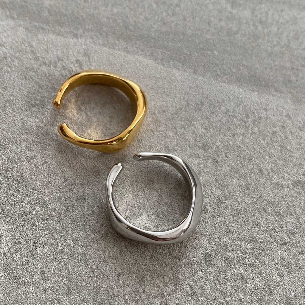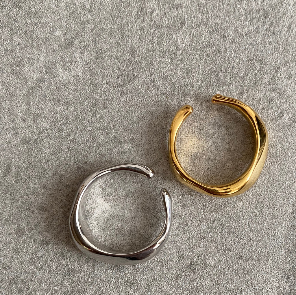 波が穏やかに美しく流れているようなイメージで女性らしい印象の丸みのあるフォルムに仕上げたシンプルに美しいイヤーカフ、リングです。
