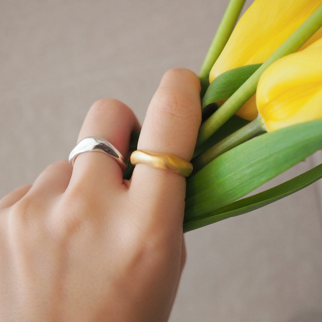 波が穏やかに美しく流れているようなイメージで女性らしい印象の丸みのあるフォルムに仕上げたシンプルに美しいリングです。