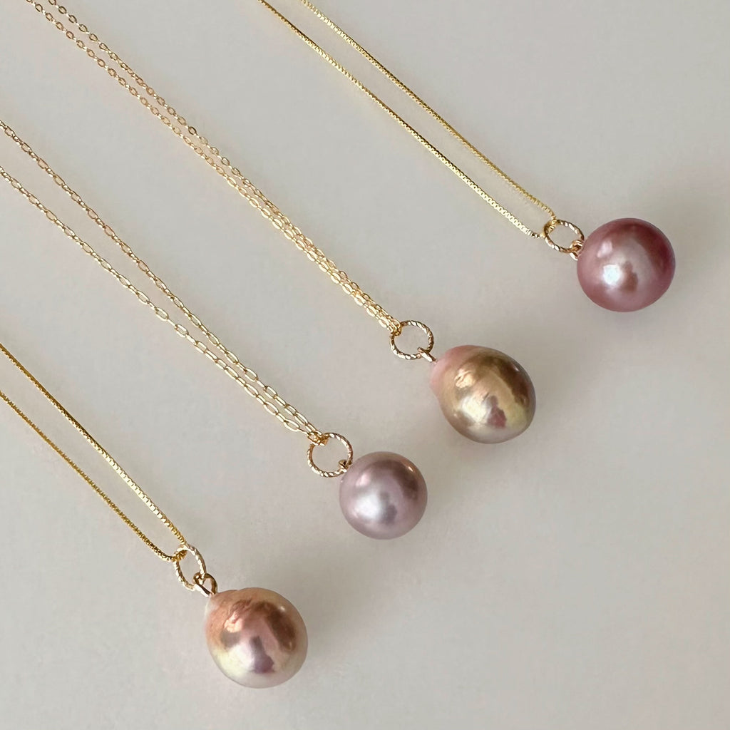 グリーンやイエローがかったメタリックに輝く色合いやふんわり優しいパープルカラー、オーキッドピンクの大人で上品なカラーと素敵な色合い勢揃いです。お好みのパールをお選びください。