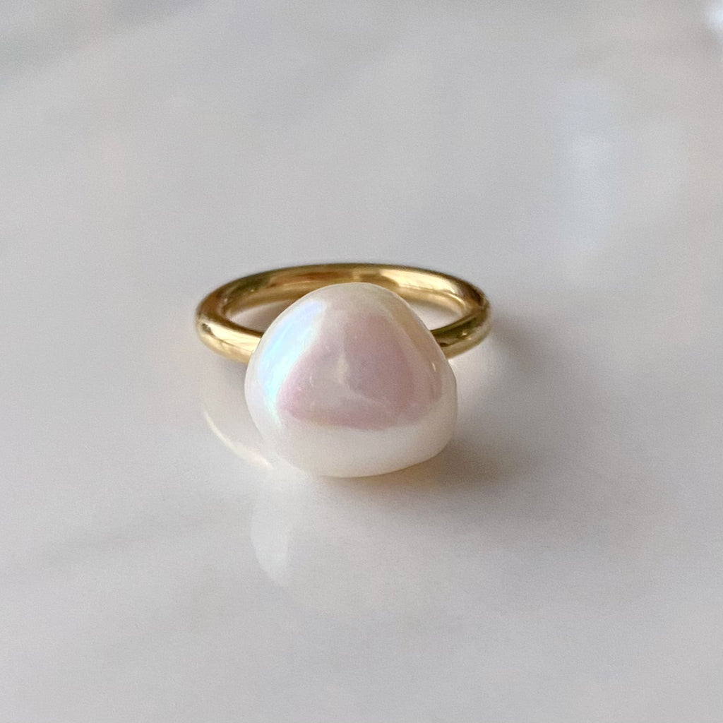 リングのアームはつるんと丸みのあるシンプルだけど存在感のある太さでお作り致しました。