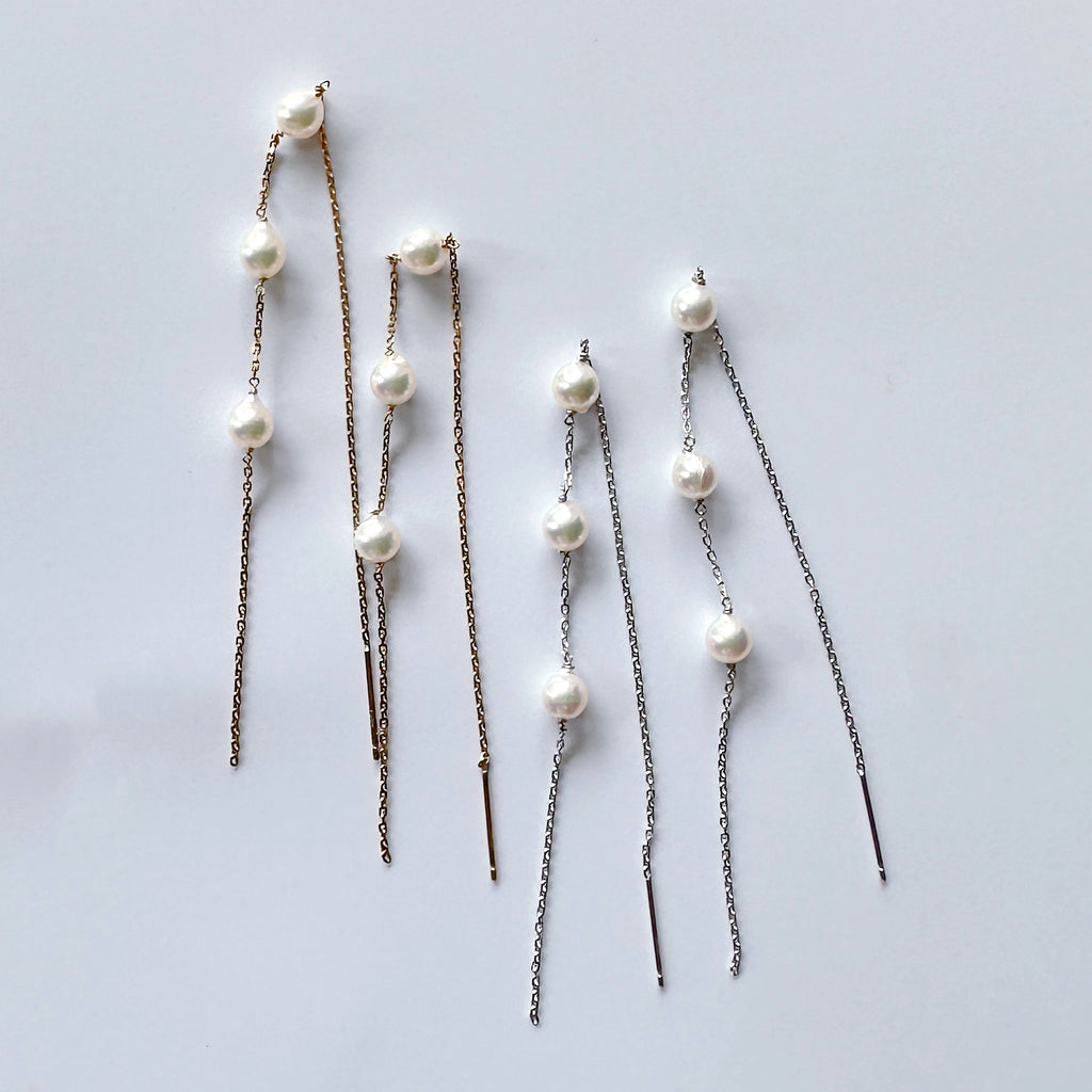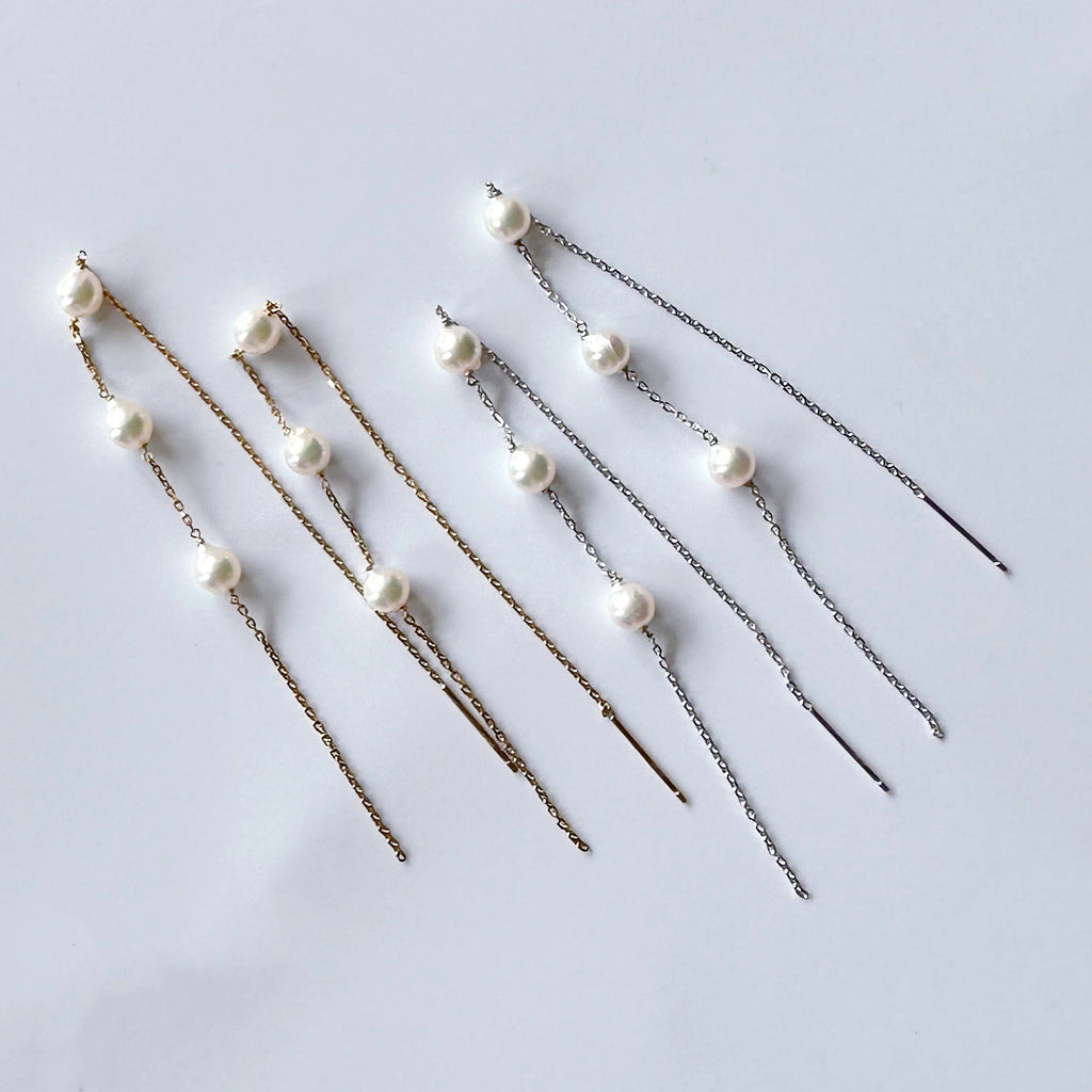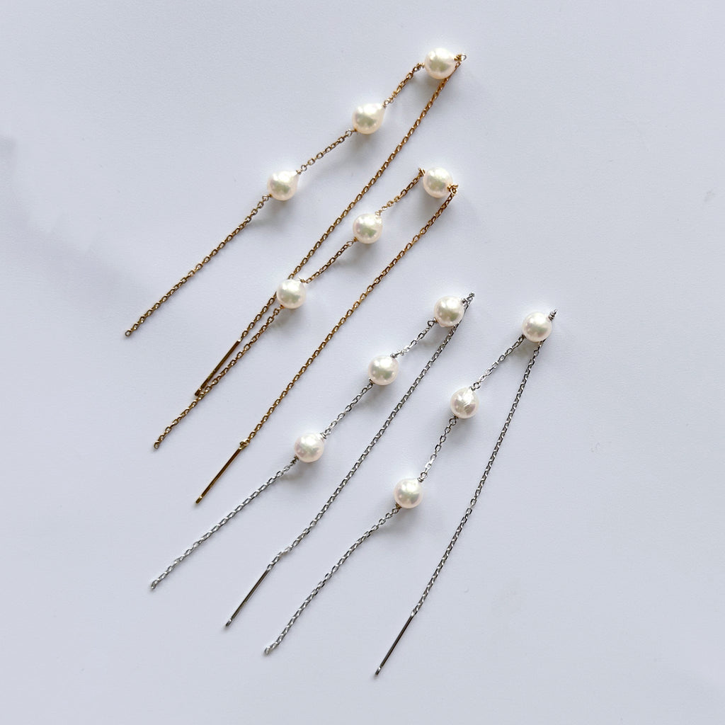 美しい輝きのあこや真珠が自信を与えてくれるステーションピアスです。