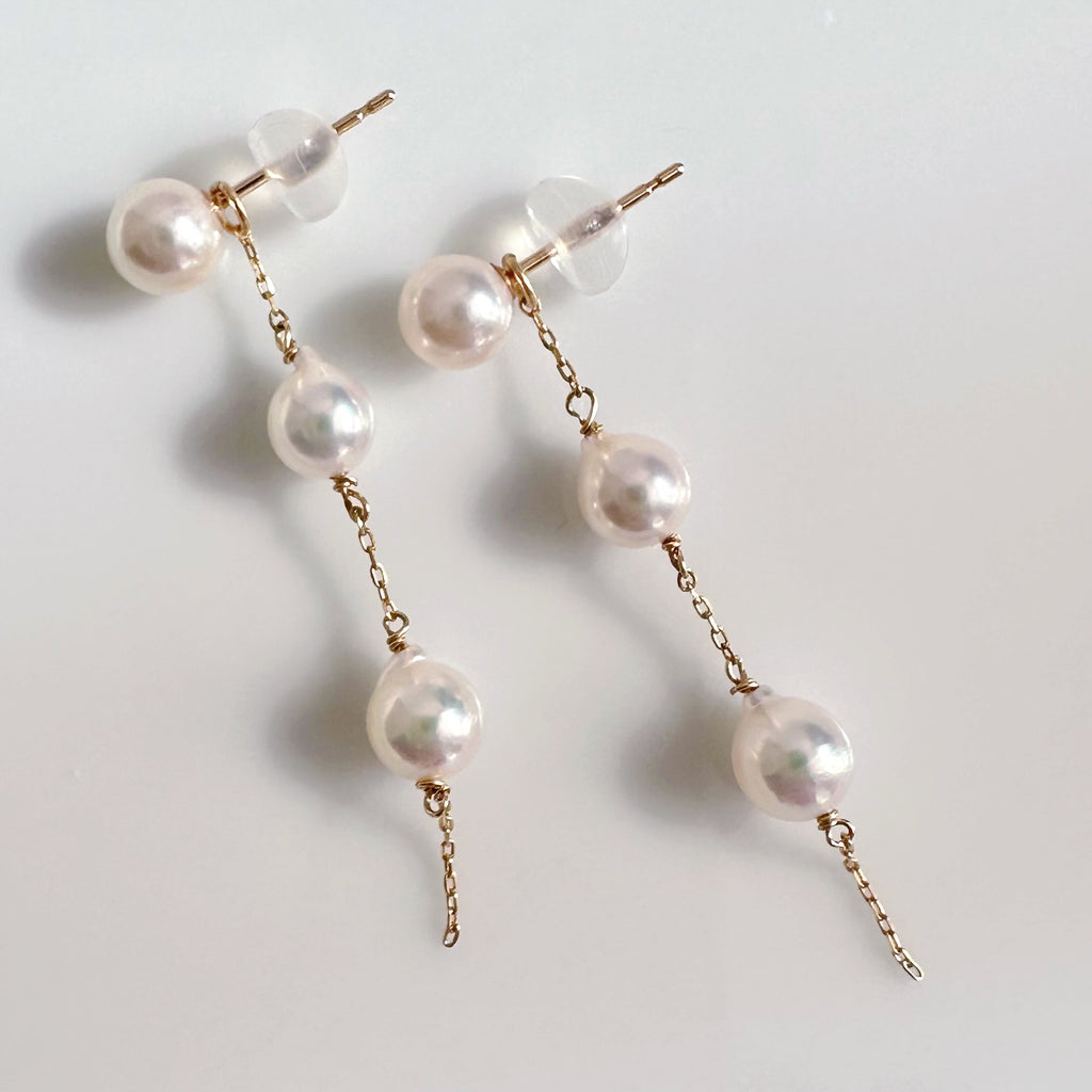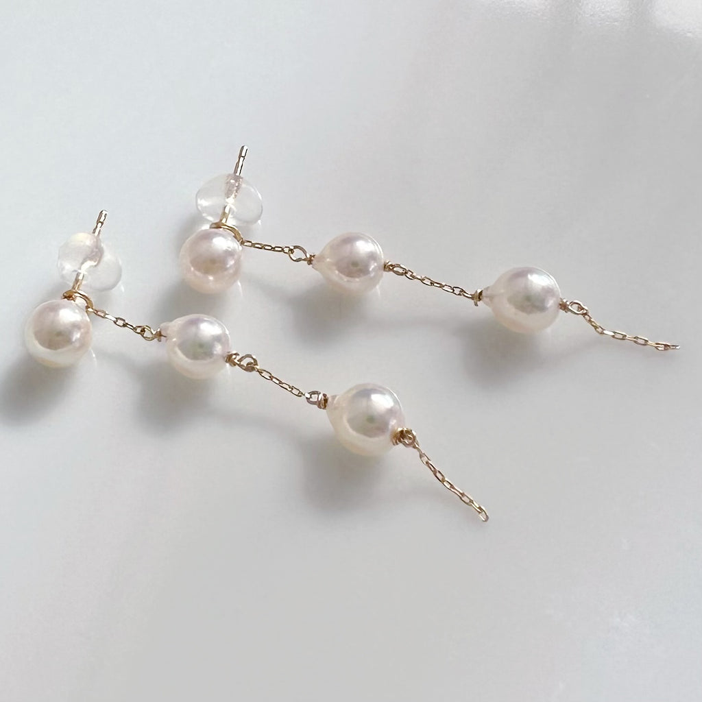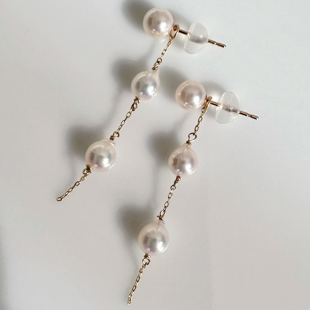 k10/k18 Akoya pearl station charm ピアス イヤリング