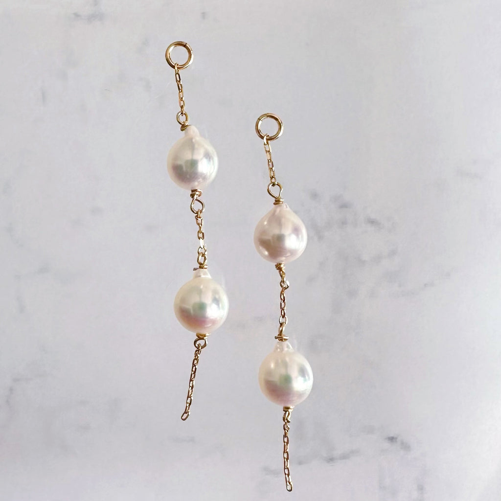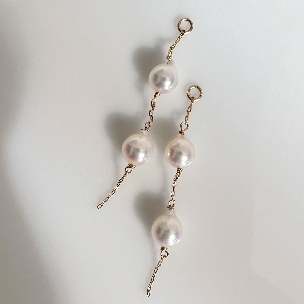 k10/k18 Akoya  pearl station charm ピアス イヤリング