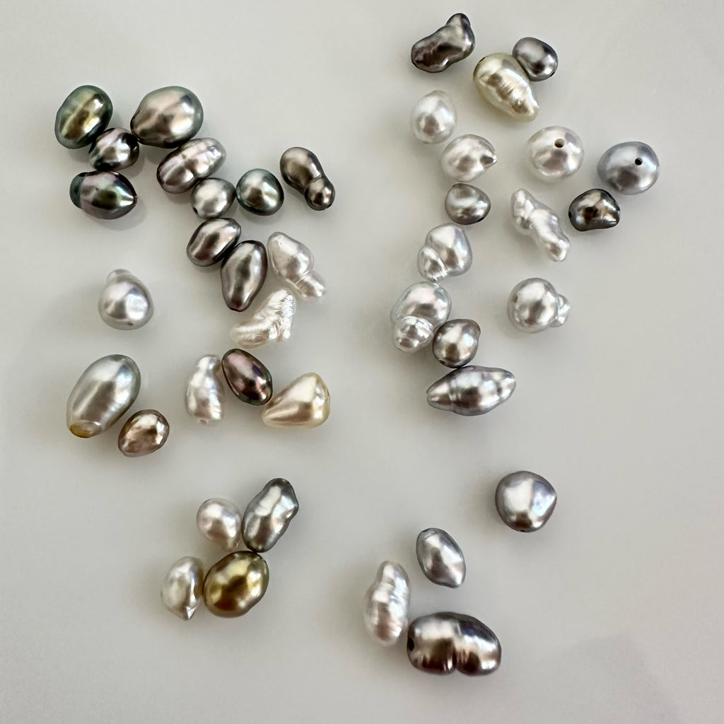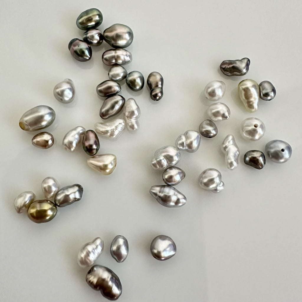 シルバーやイエロー、グリーン、シルバーホワイト、赤みがかったブラックなどタヒチらしい様々な色合いがとっても魅力的な厳選パールです。