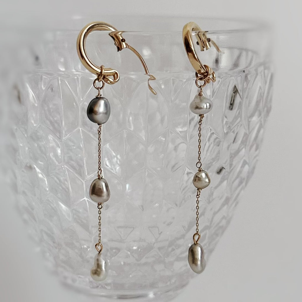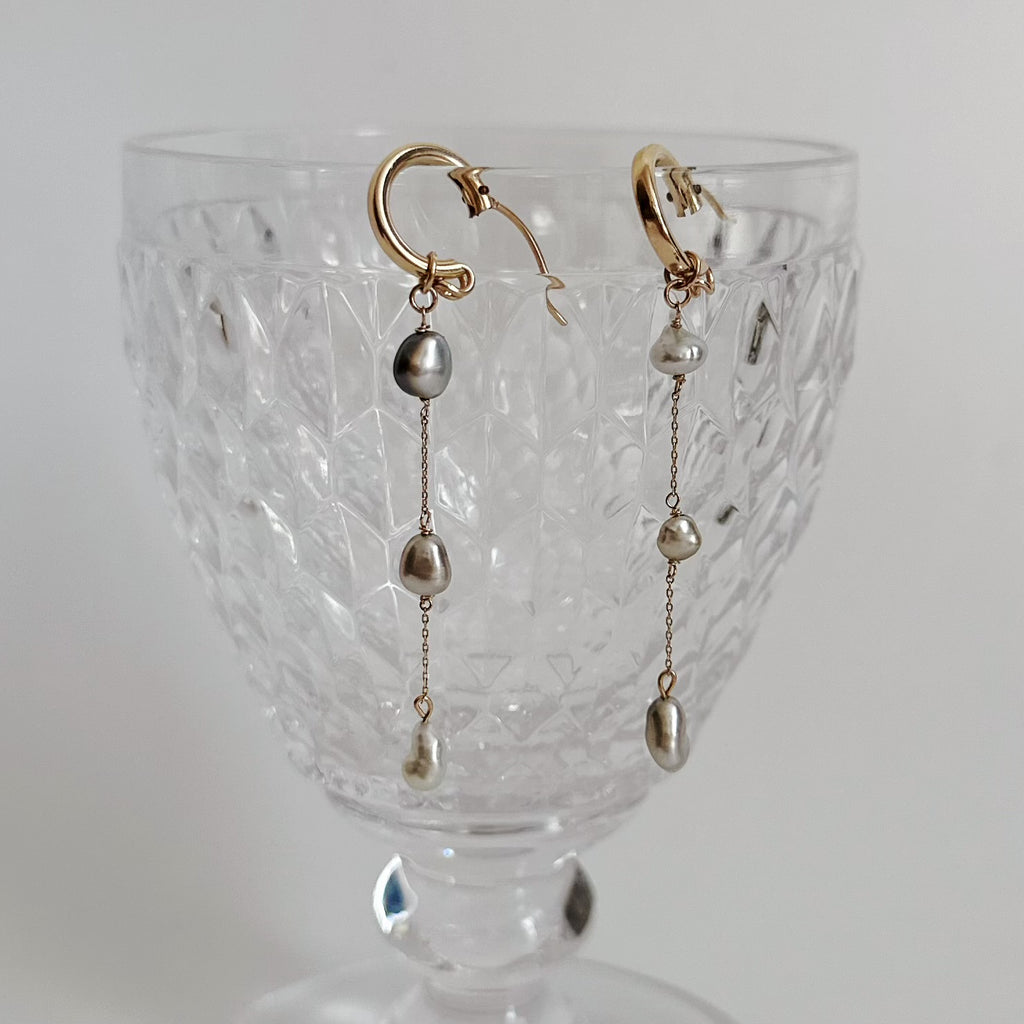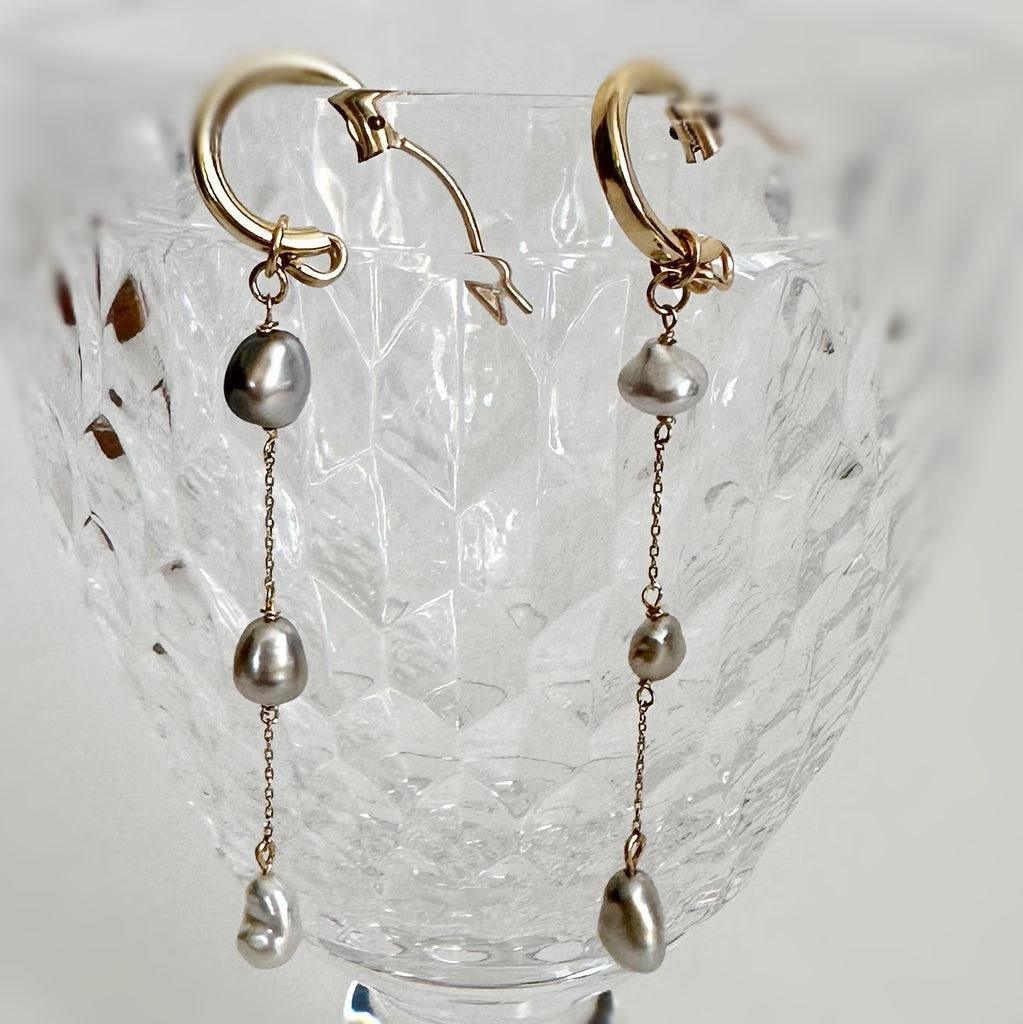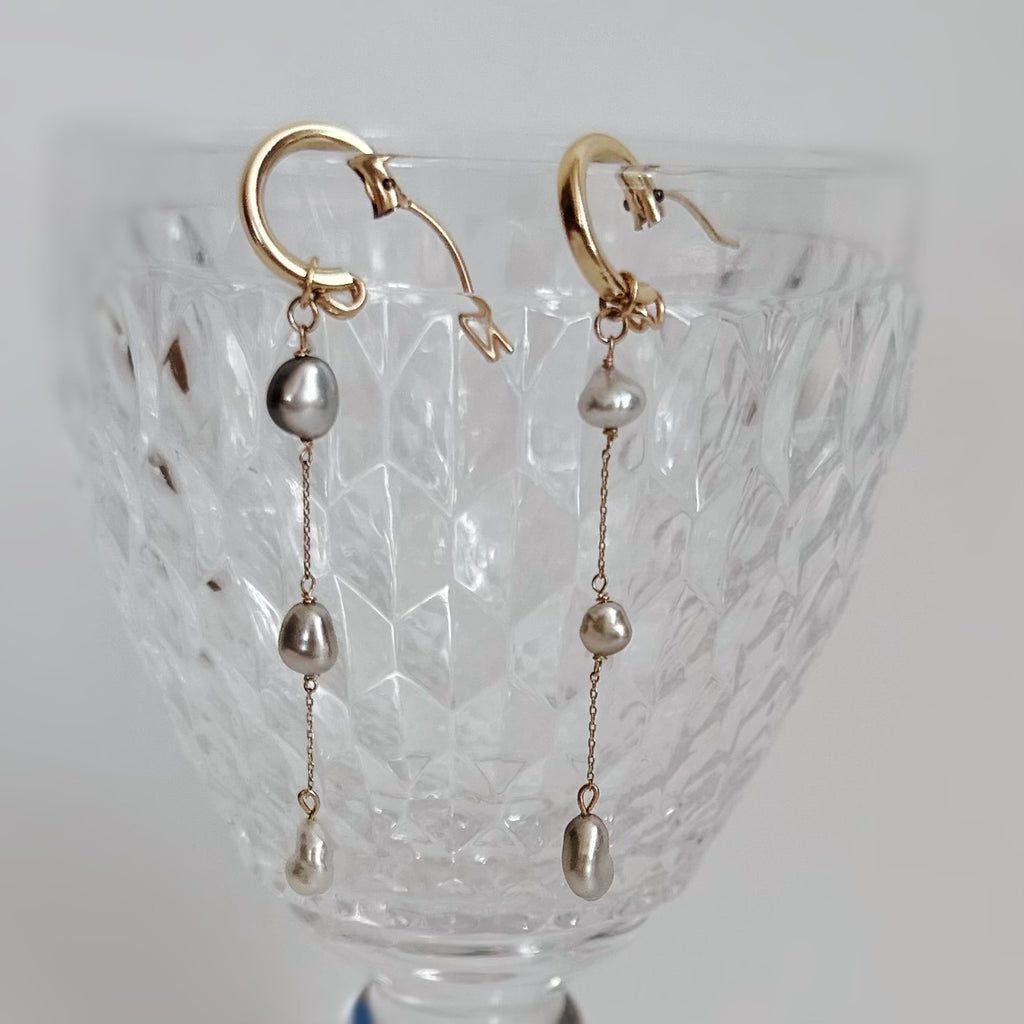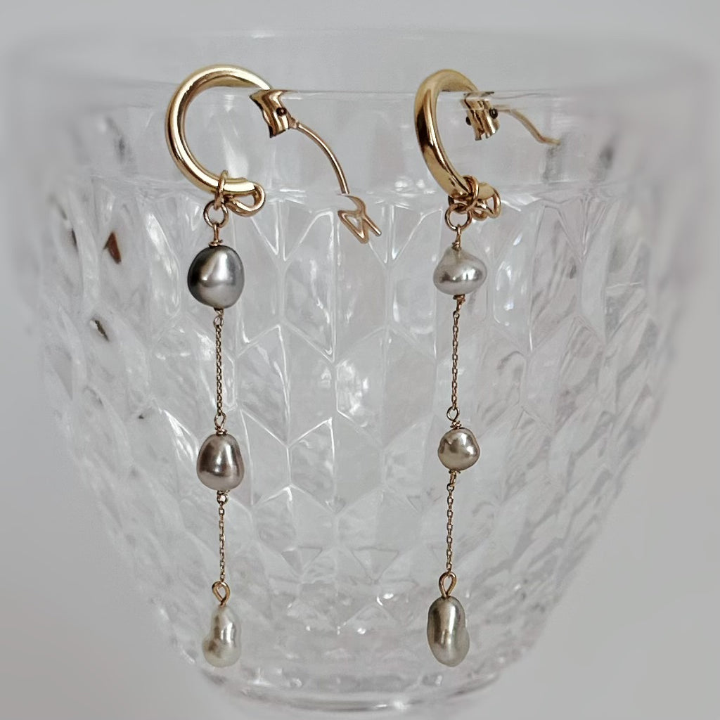 タヒチケシパールの3連ロングピアス、イヤリング。