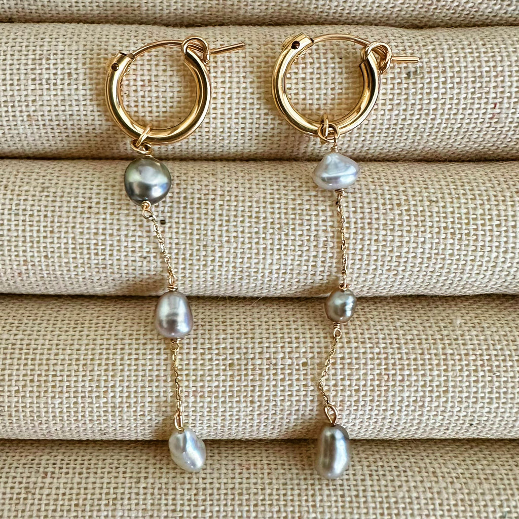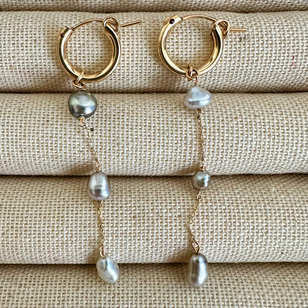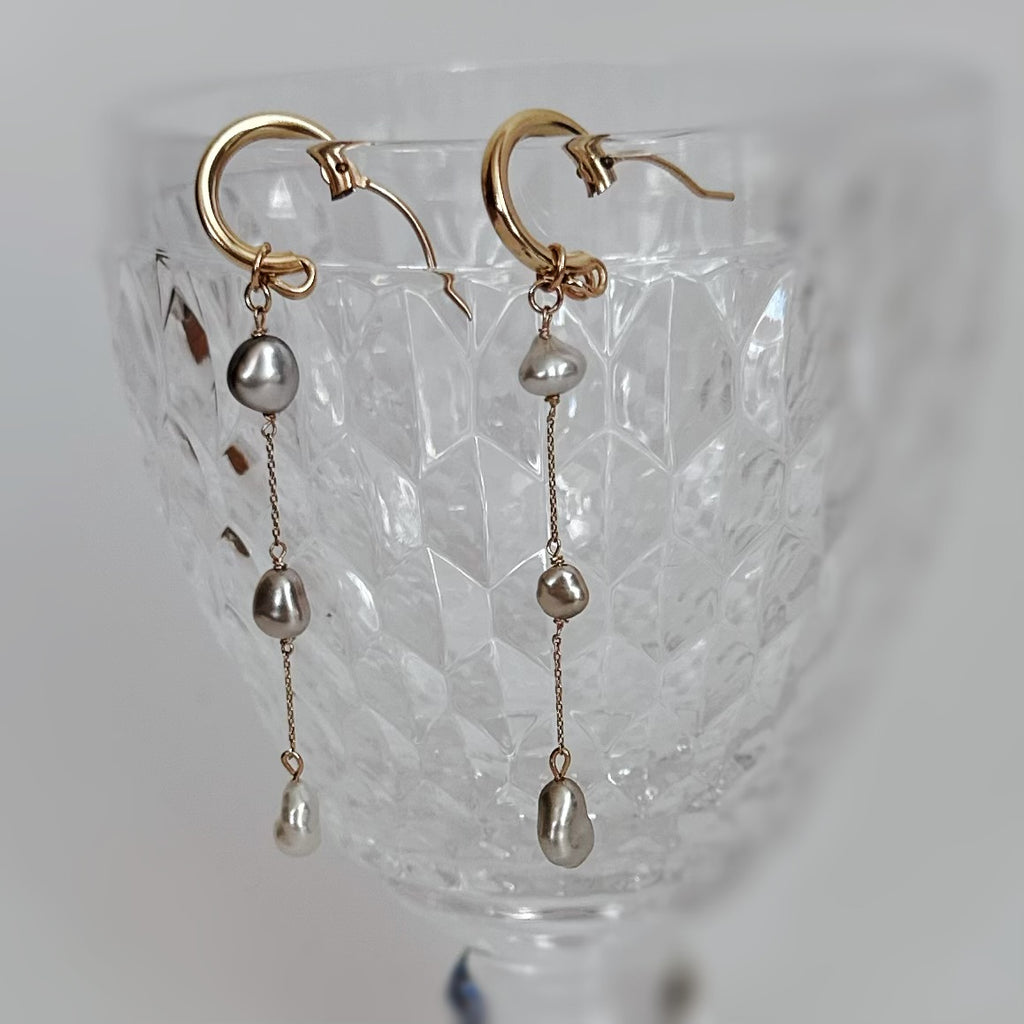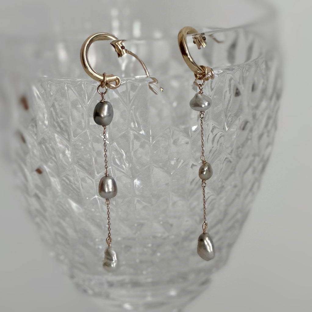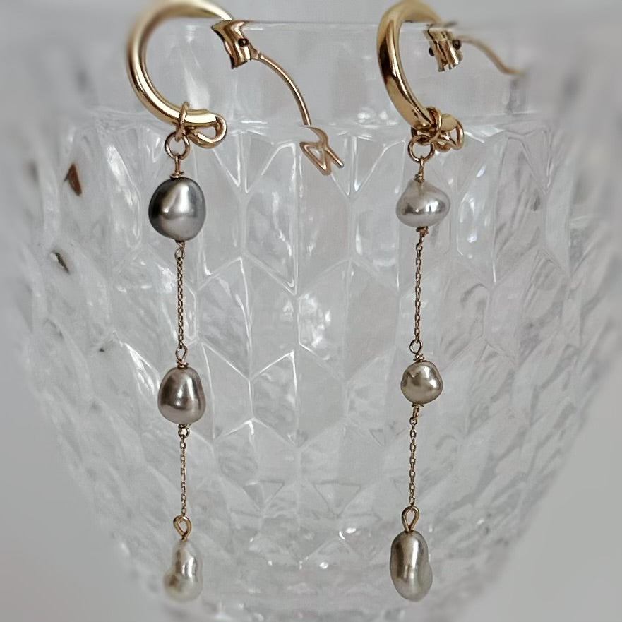 タヒチケシパールの3連ロングピアス、イヤリング。