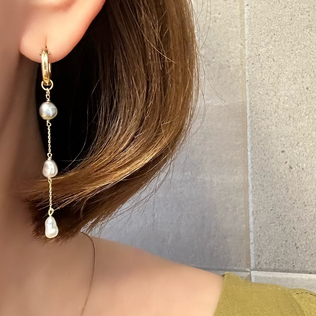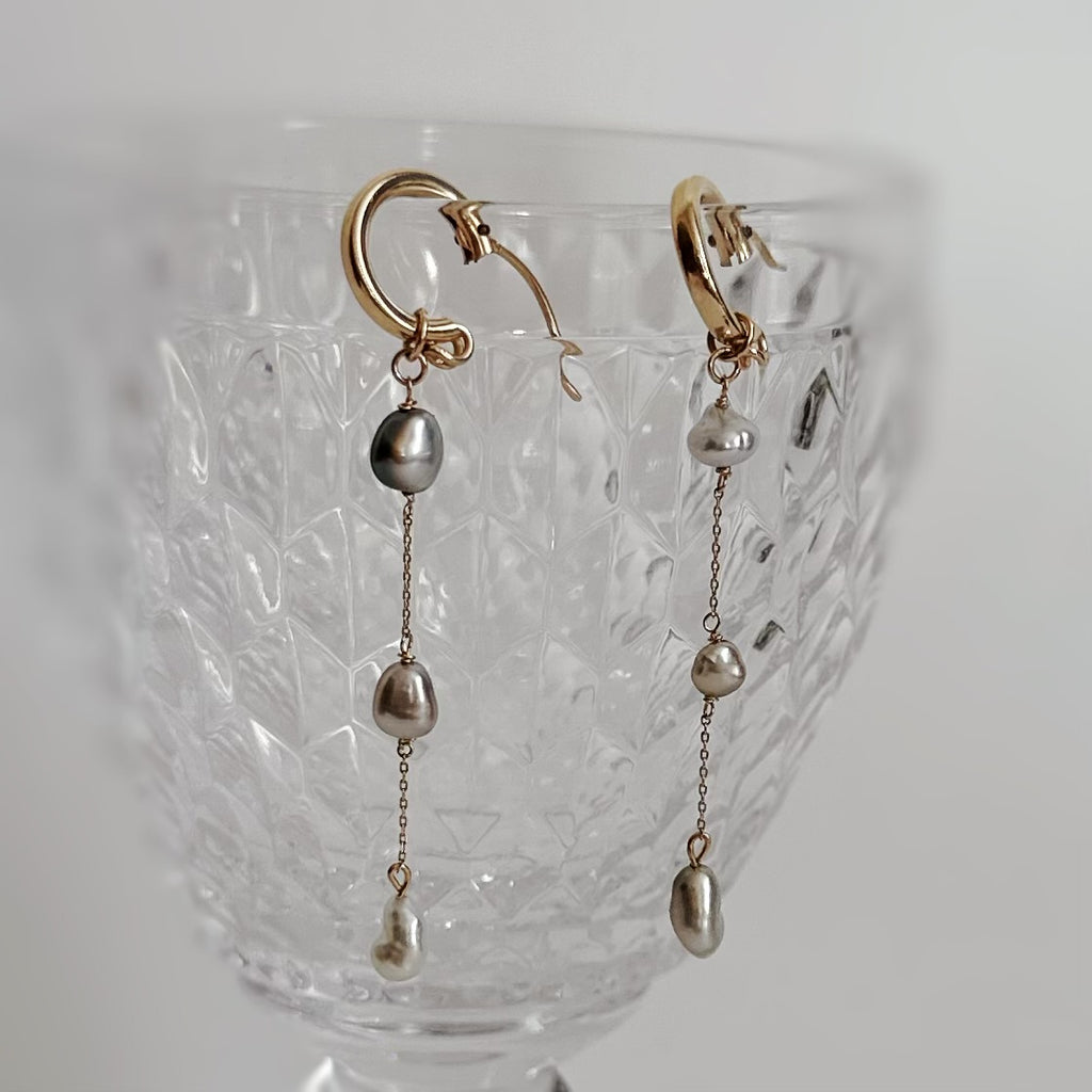 Tahiti keshi pearl 3 station ピアス イヤリング