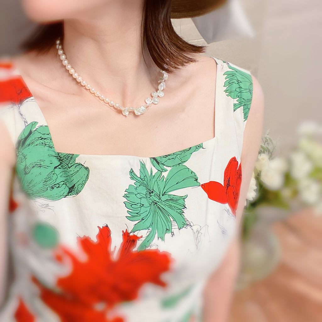 asymmetry petal pearl necklace ネックレス