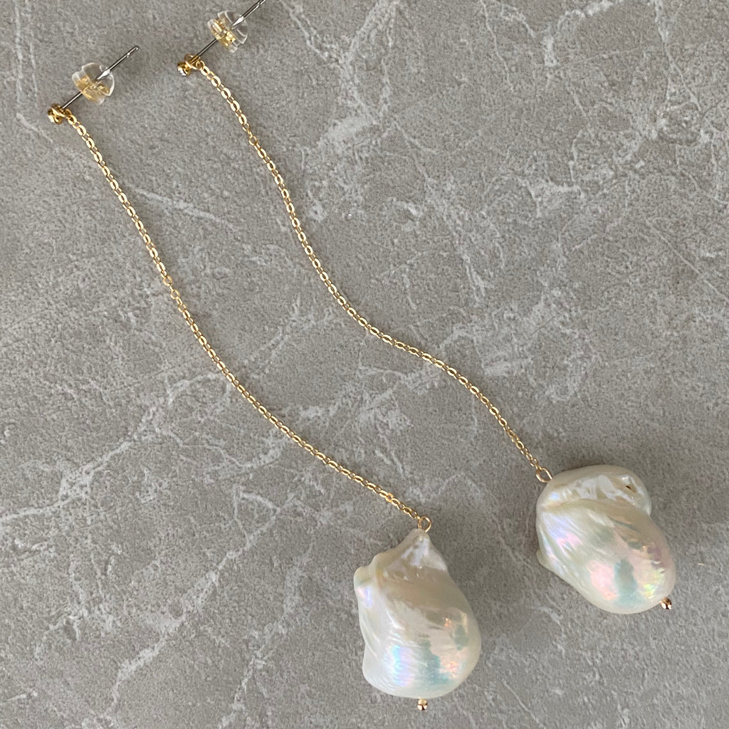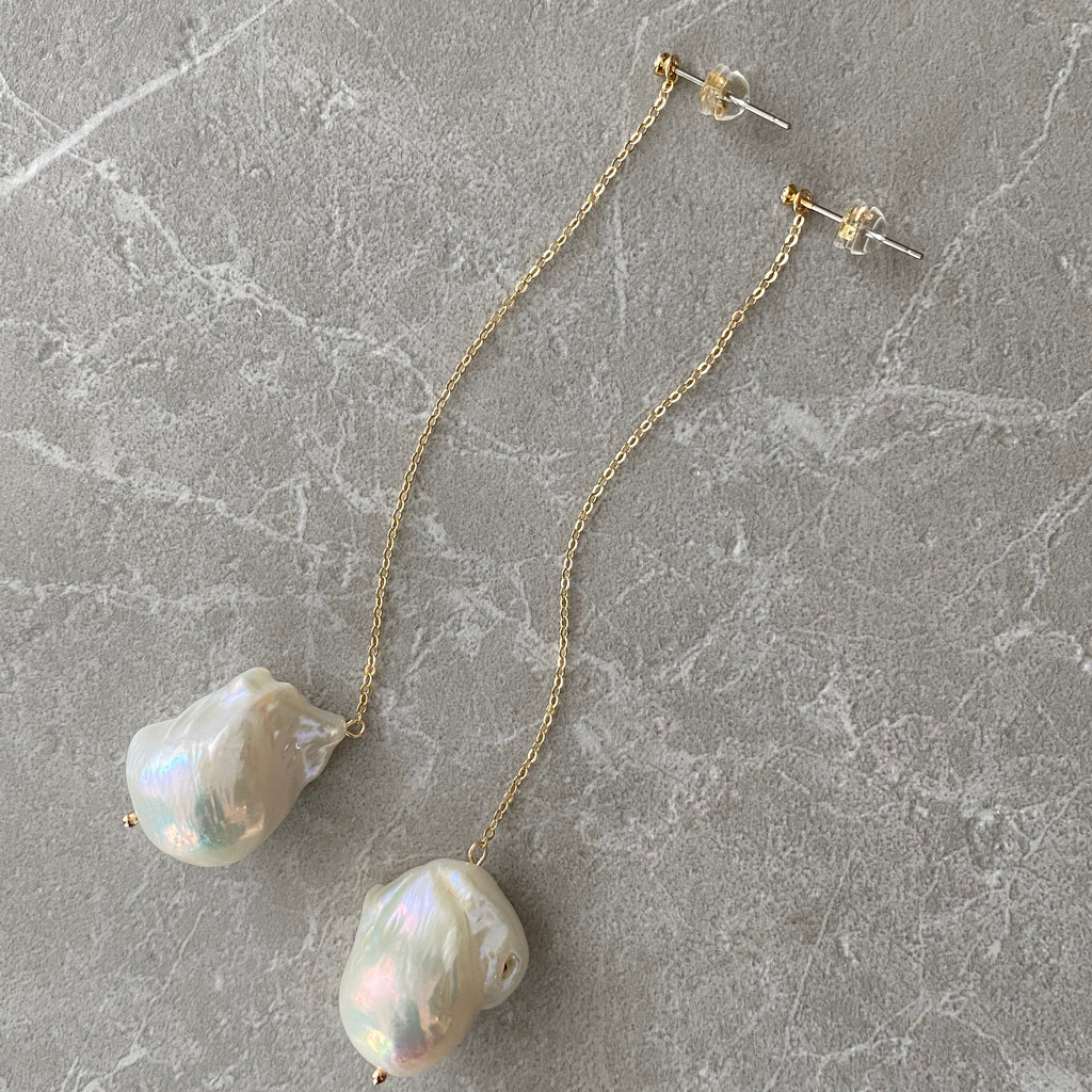 No.10 oyster baroque pearl long weddingピアス イヤリング