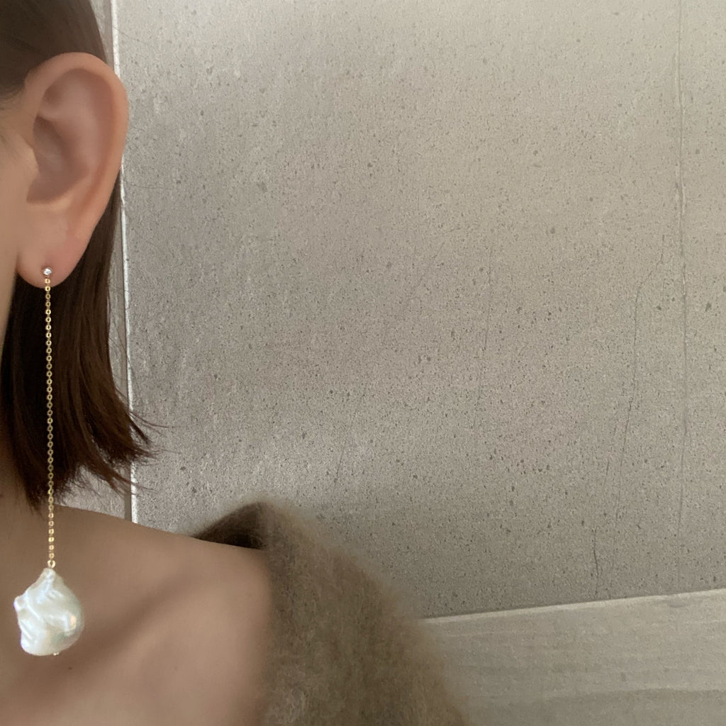 繊細なチェーンに大ぶりのパールがゆらゆら美しく揺れるデザイン。