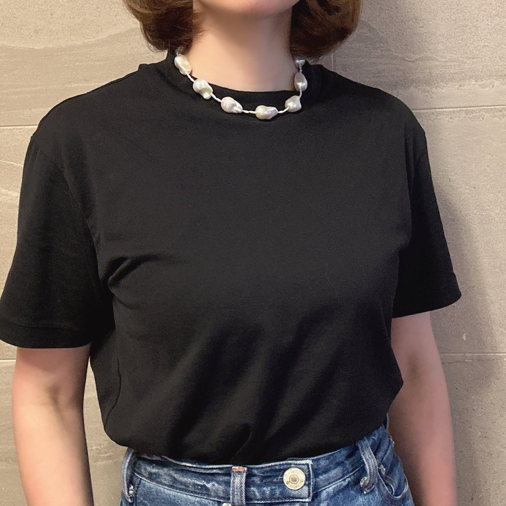 Not only is it eye-catching and gorgeous, but it also has a very light finish that looks and feels great to wear. This necklace beautifully combines the weightiness of baroque with the lightness of poppy pearls.