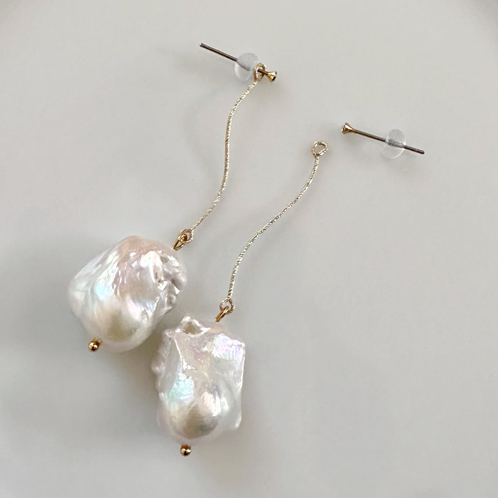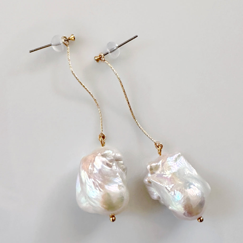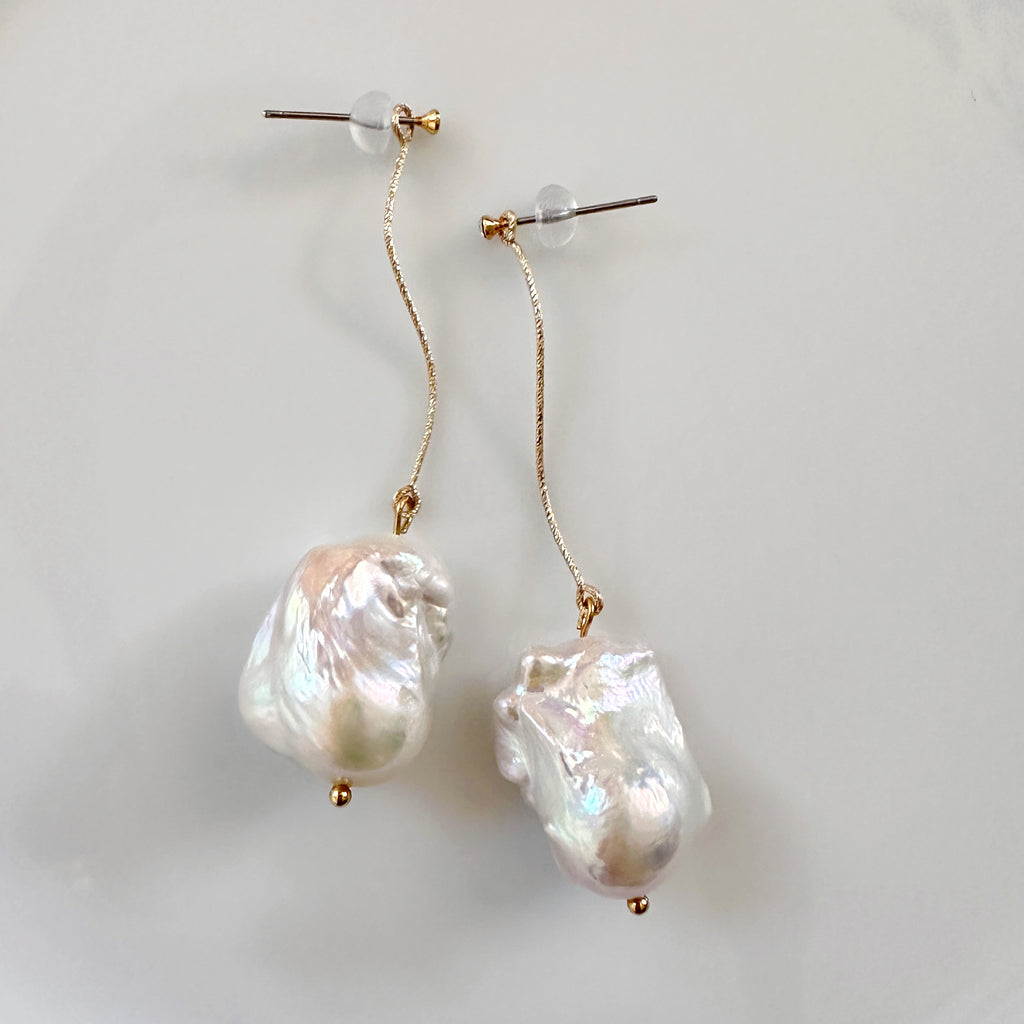 艶やかで上質なテリのバロックパールが美しく揺れるS字ラインピアス、イヤリング。